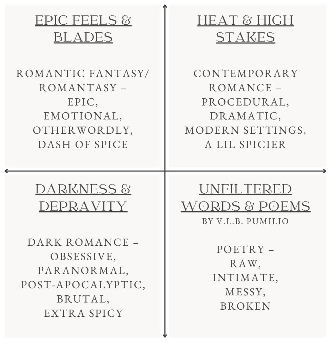 Use the four quadrants to find your next read by V.L. Andromeda!